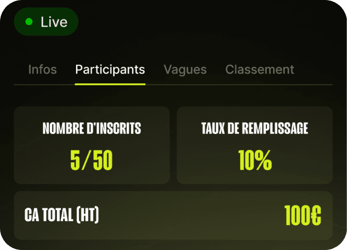 L’application a été super simple à utiliser pour notre équipe pour gérer les scores et la logistique. L’impact a été immédiat dans notre salle : ambiance boostée, adhérents ultra motivés, et une vraie émulation qui a renforcé la cohésion entre les membres.